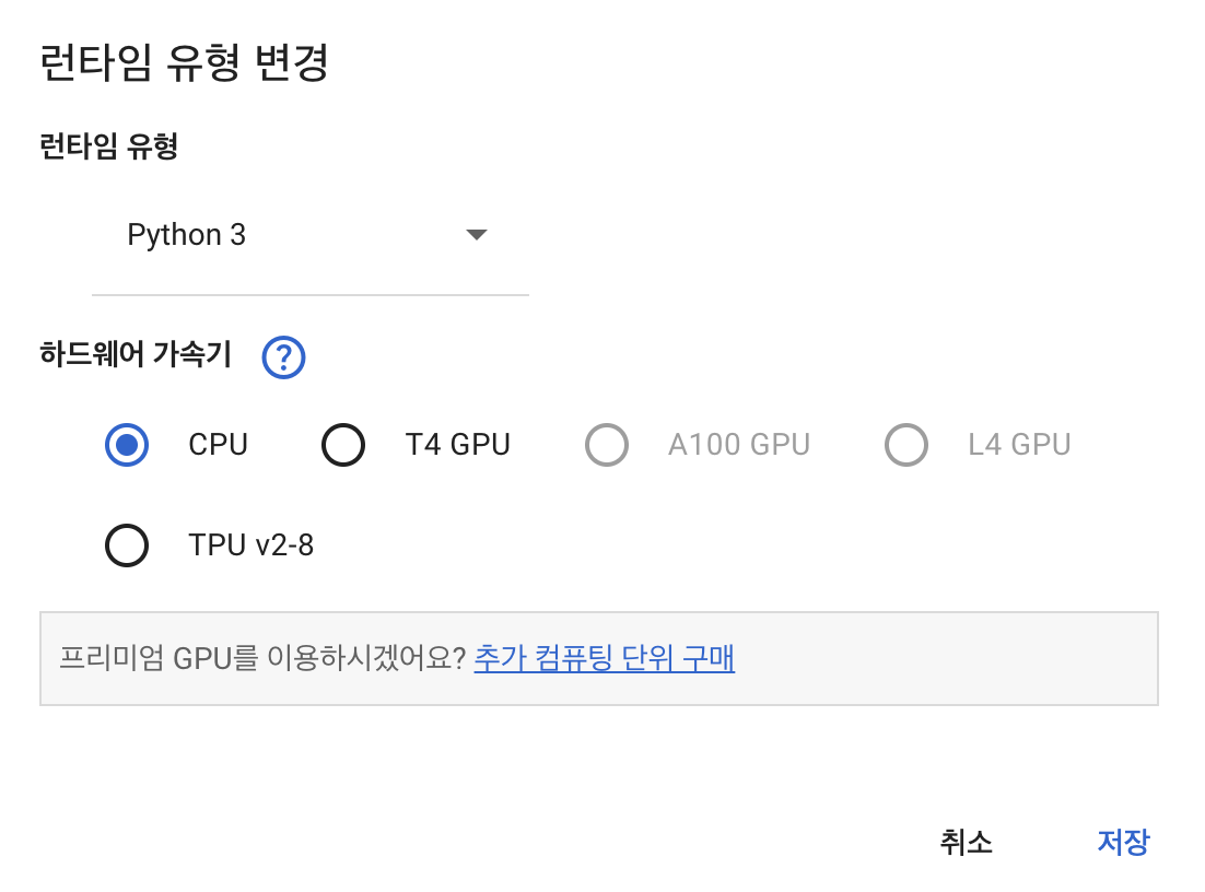 2. 딥러닝 모델을 설계할 때 활용되는 장비 확인