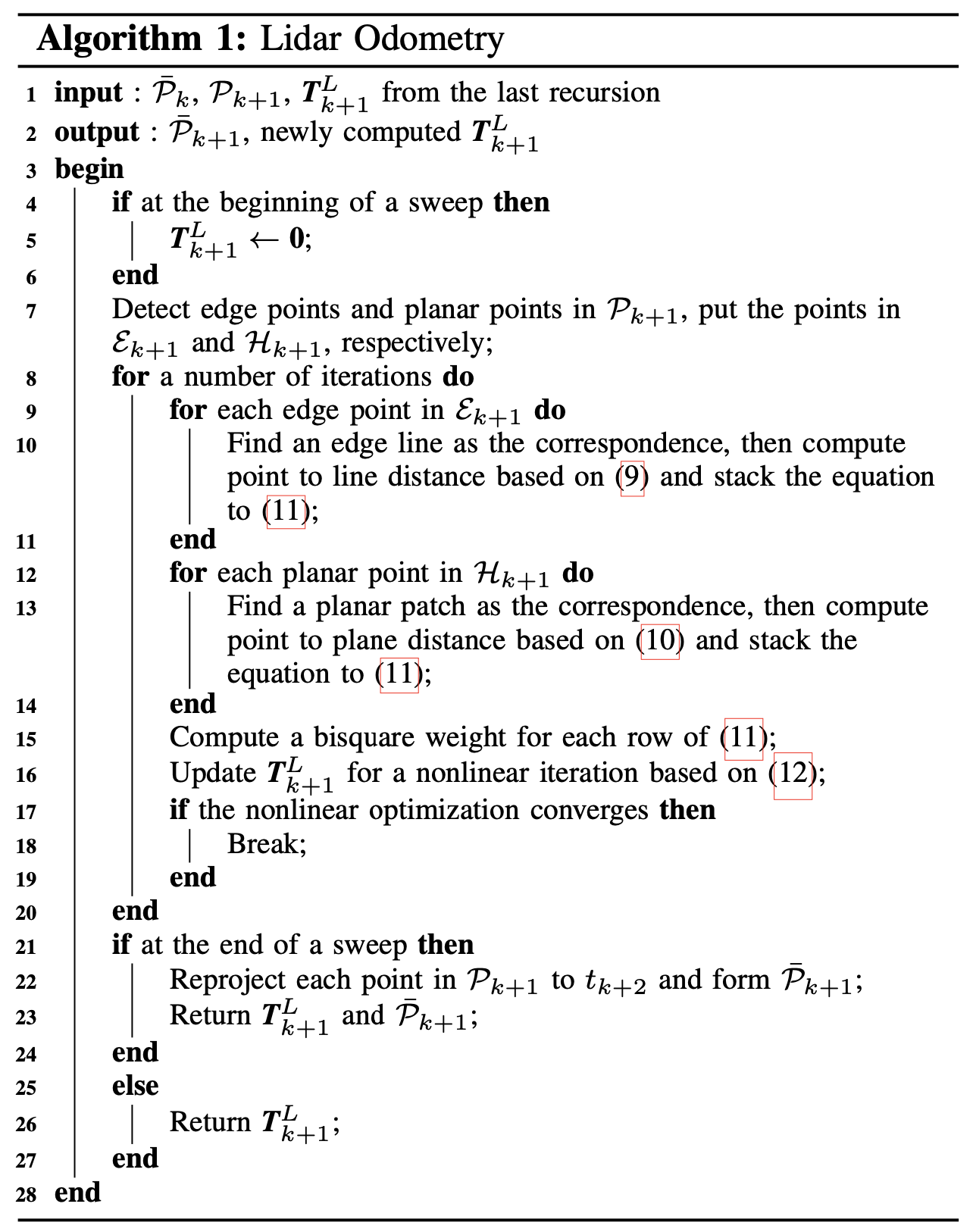 각 스윕이 끝나면 sweep동안 얻어진 point cloud Pk또한 얻어짐. 이러한 Pk는 t(k+1)에 대해 reprojection 되는데 이렇게 얻어진 Pk_bar와 다음 스윕서 새롭게 얻어지는 Pk+1를 사용하여 lidar motion을 추정한다.