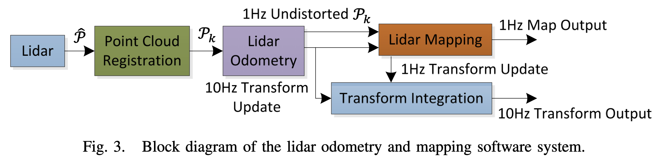 이렇게 추정된 motion은 Pk에서의 왜곡을 수정하기 위해 사용되며, 이 알고리즘은 10Hz의 빈도로 발생.
