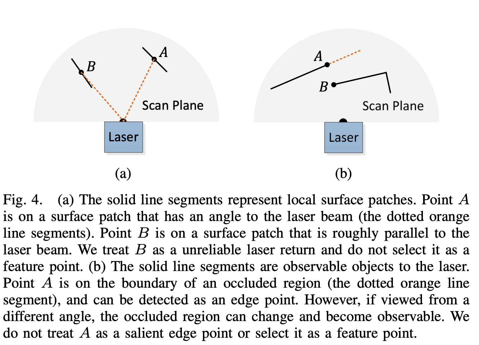 우리는 feature points를 sharp deges와 planar surface patches에서 뽑을 것.