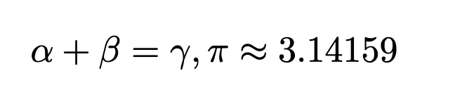 \alpha + \beta = \gamma, \pi \approx 3.14159